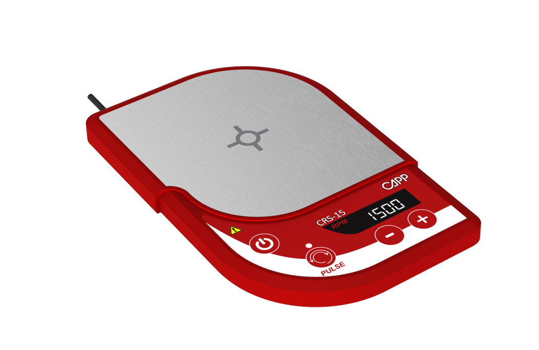 CappRondo magnetic stir plate has the additional function of pulse mode, improving the mixing process, by stirring for 30 seconds in each direction. Only 1.65cm thick, CappRondo magnetic stirrer is one of the slimmest profile stirrers on the market. With its 600 grams, Capp magnetic stirrer is also one of the lightest. CappRondo magnetic stir plate is maintenance free. The total load of CappRondo magnetic laboratory stirrer is 800mL. The best stirring effect can be obtained with a bread base 250mL beaker. CappRondo magnetic stirrer starts mixing at the speed of 15 rpm and can go up to 1500 rpm with speed increments of 50 rpm.